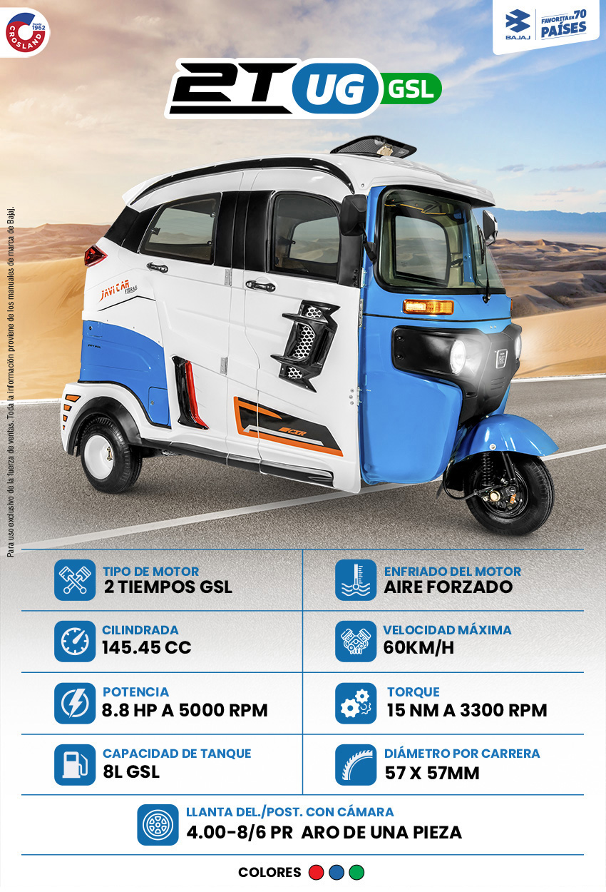 Si eres nuevo en el mundo de los motocarros, el 2T UG es tu mototaxi, con un bajo costo de mantenimiento y gran rendimiento, podrás recuperar tu inversión en poco tiempo. Además, cuenta con el Sistema Autolube patentado por Bajaj, lo que permite realizar un óptimo uso del aceite en la premezcla para que las partes de tu motor estén siempre lubricadas.