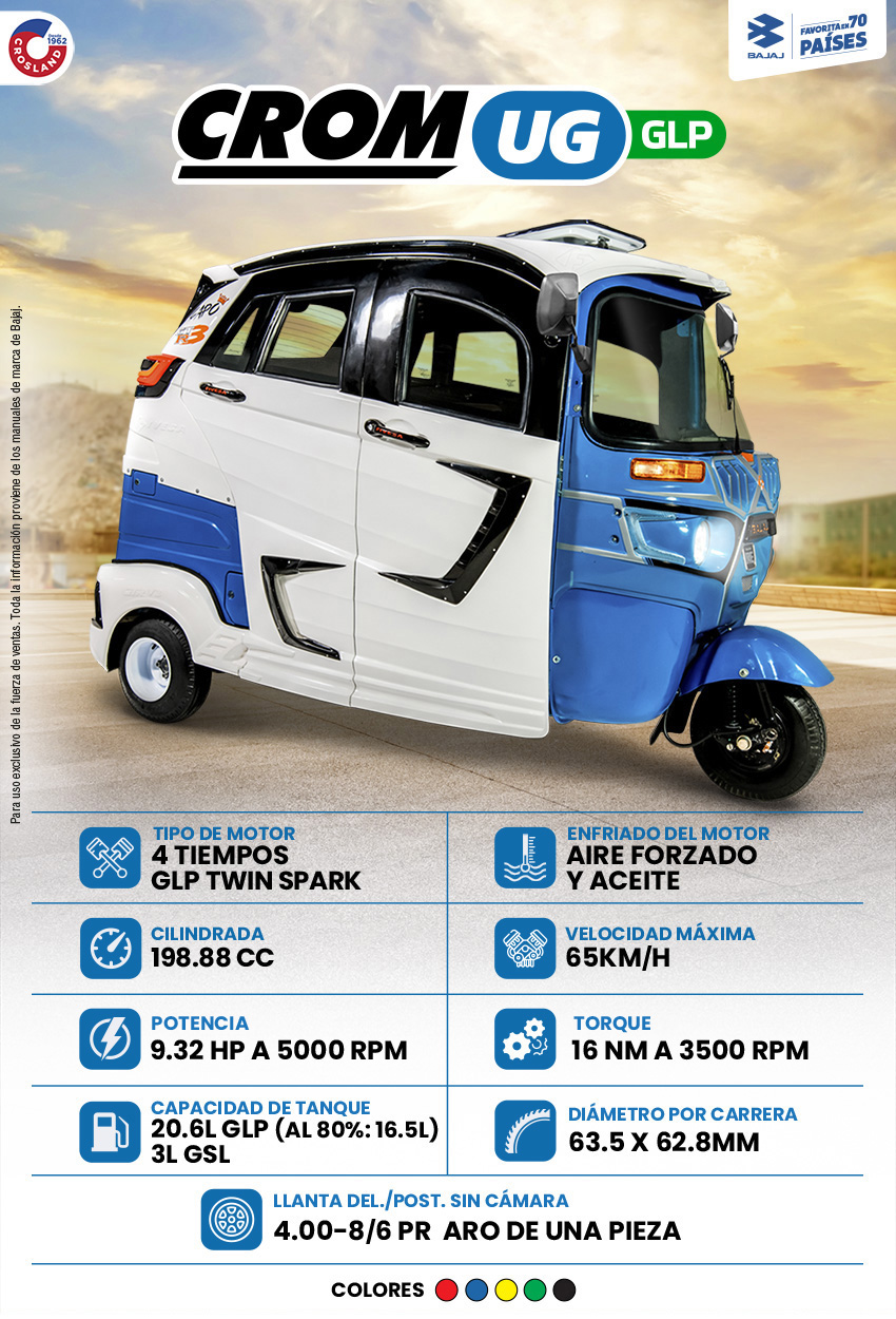 Este mototaxi cuenta con el poder de la Hipercombustión, patentado por Bajaj, lo que te permite tener un buen desempeño y rendimiento. Además, con la versión GLP ahorrarás más. Maneja más cómodo con sus asientos ergonómicos y tablero Full UG.